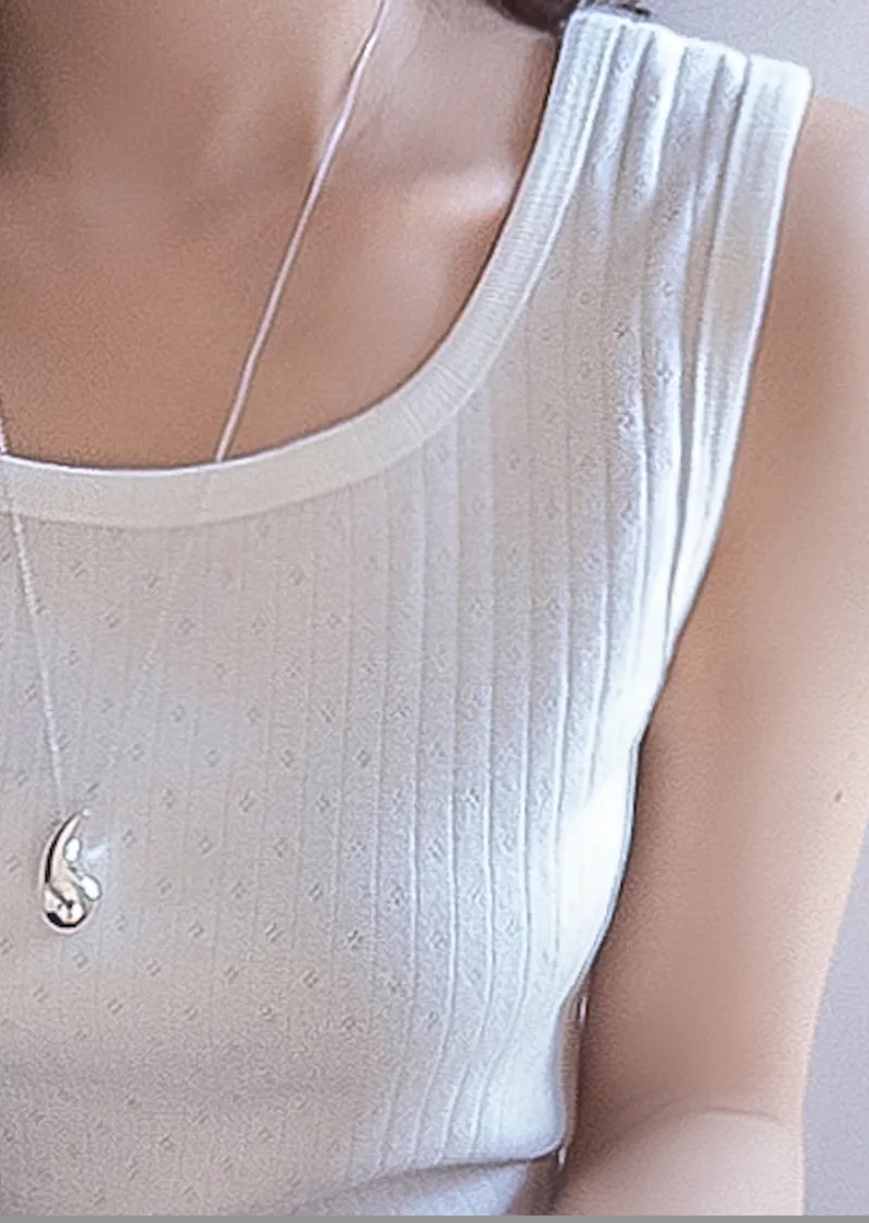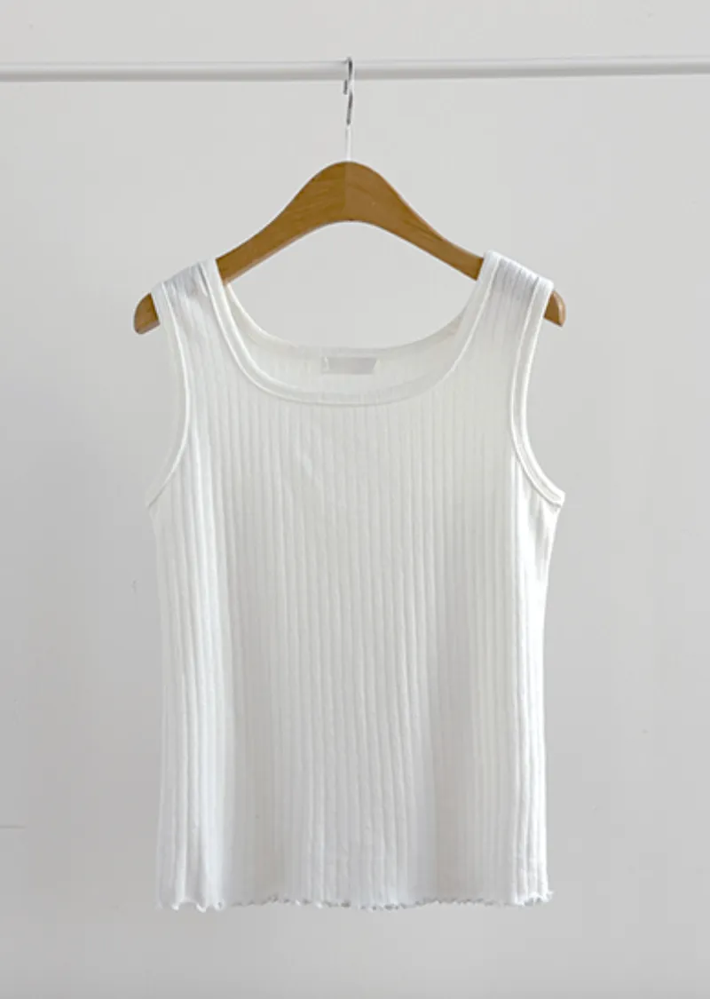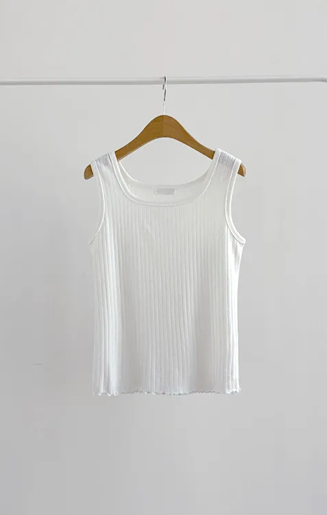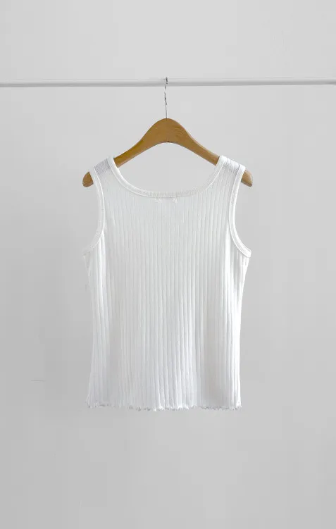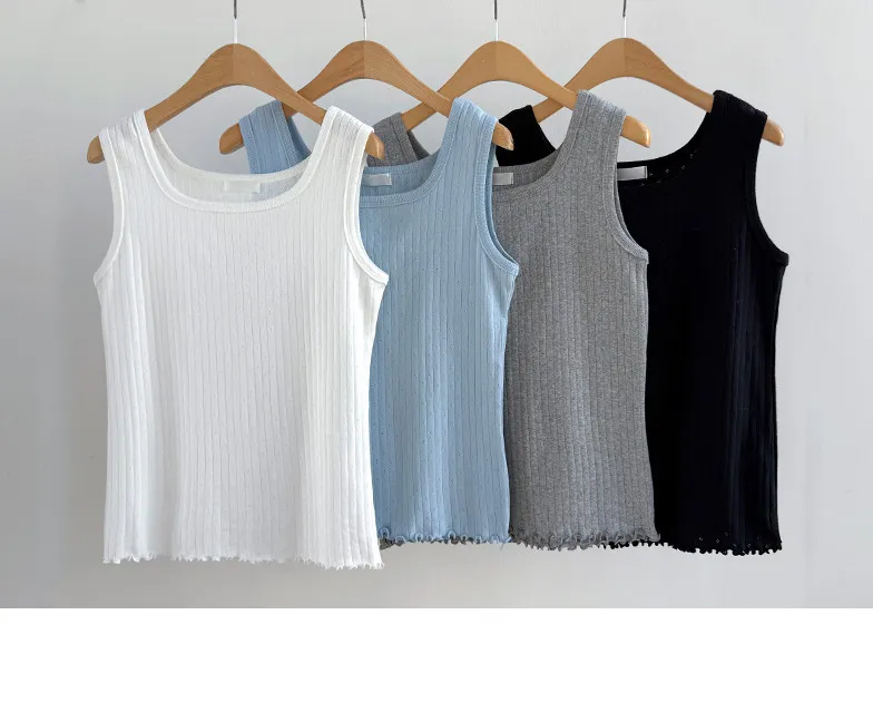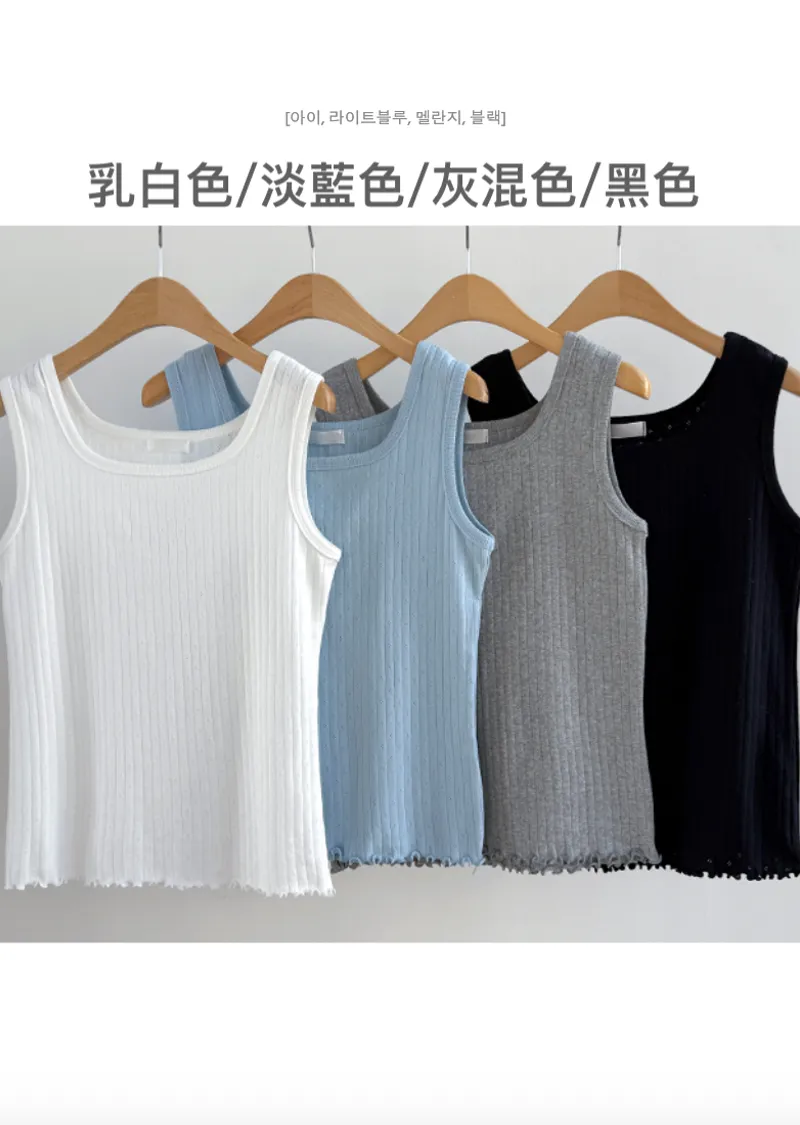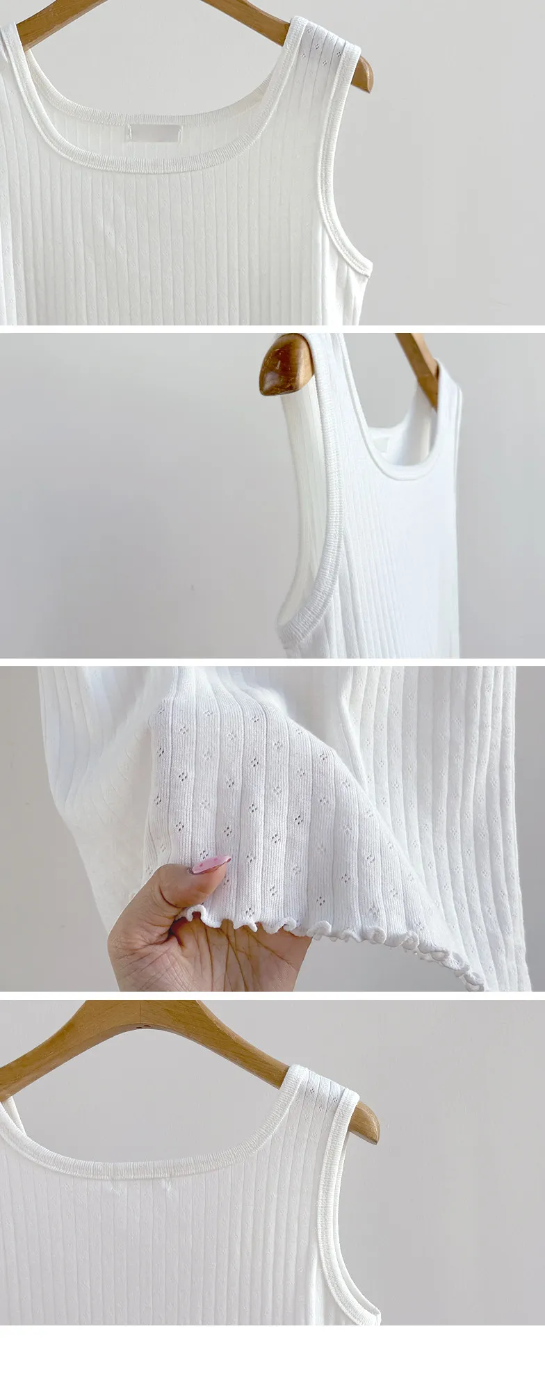 【精緻豎條紋羅紋+鏤空紋理】【波浪形下擺細節】【百搭基本款無袖上衣,可單穿或作內搭】