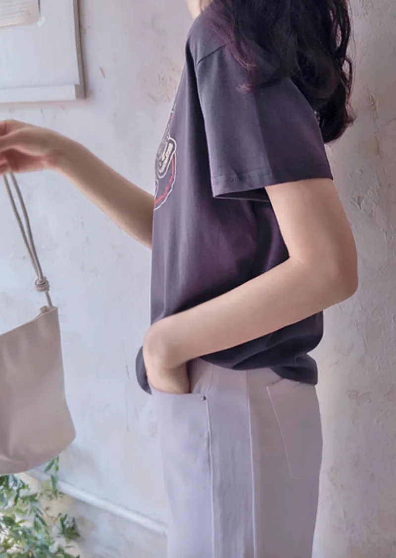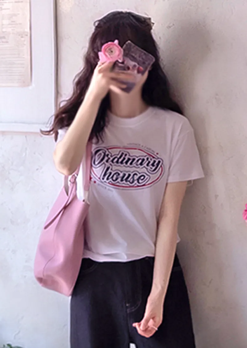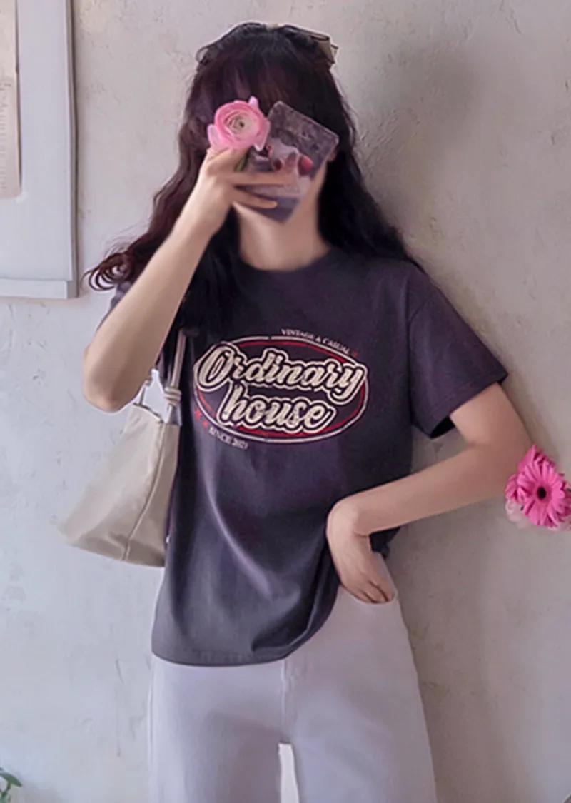 字母印花柔軟舒適莫代爾棉上衣