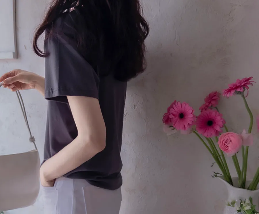 【高品質夏季T卹,含57%棉、37%莫代爾和6%氨綸】【彈性柔軟的莫代爾布料】【穿著舒適】【字母印花設計,點睛之筆】【性價比超高】【易於搭配,讓您從現在到夏天穿出清新、優雅、時尚的風格】