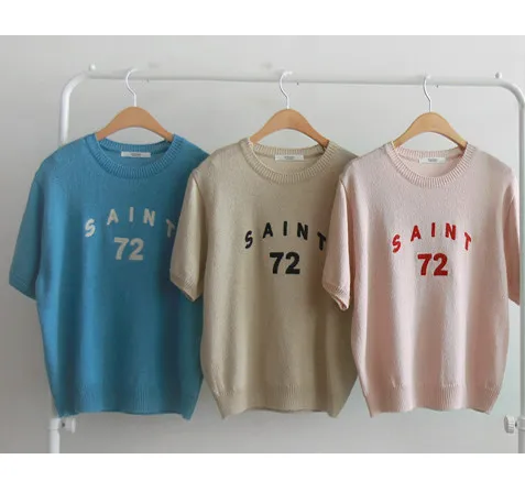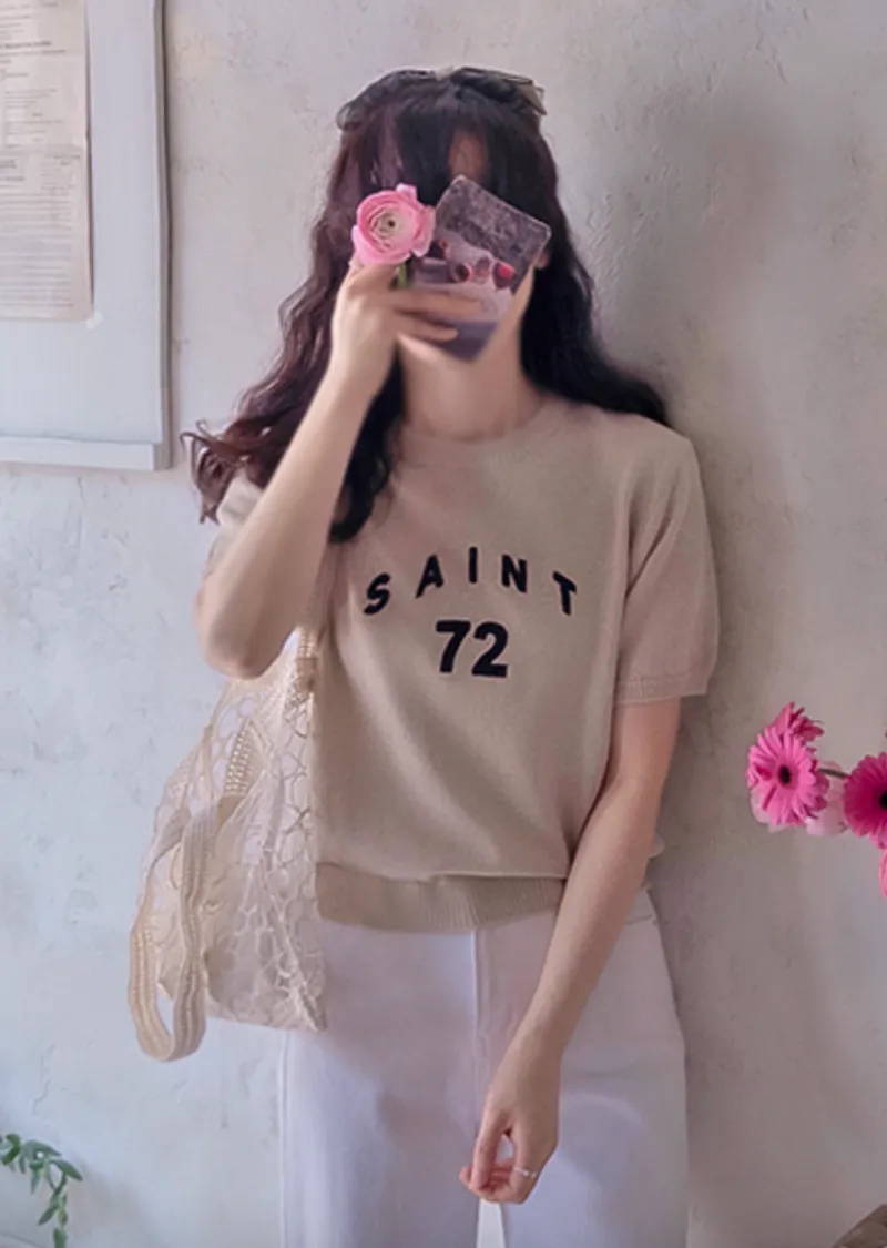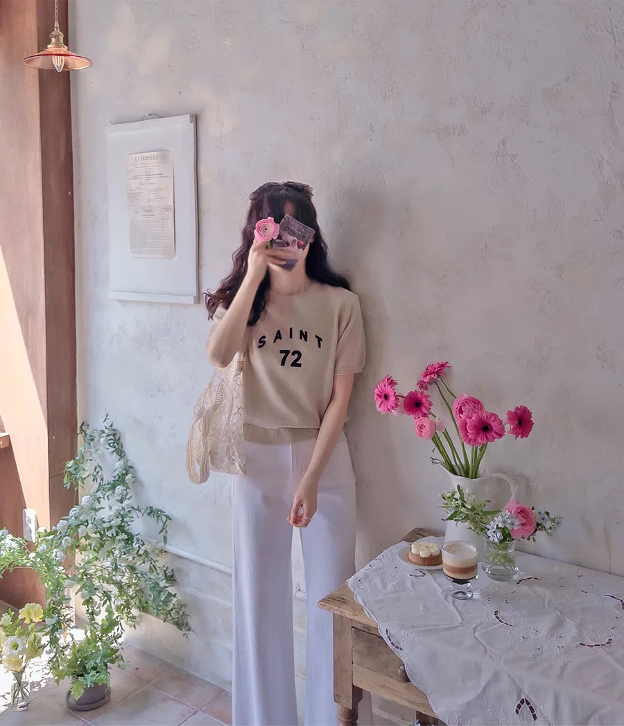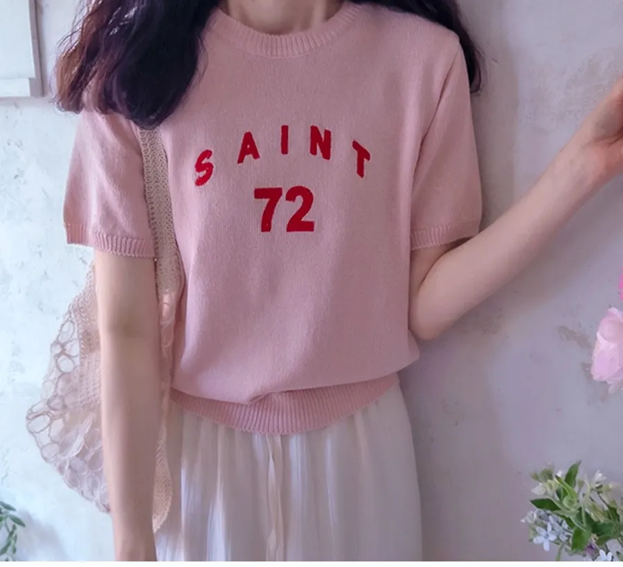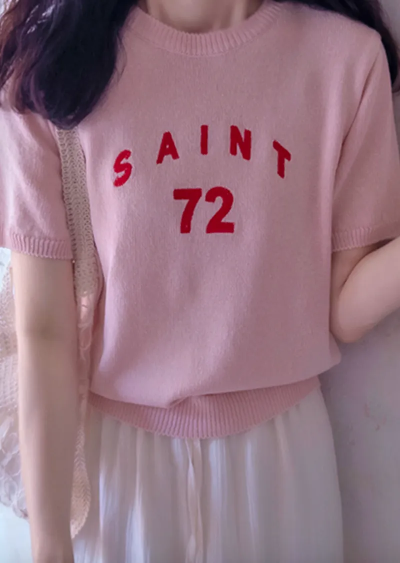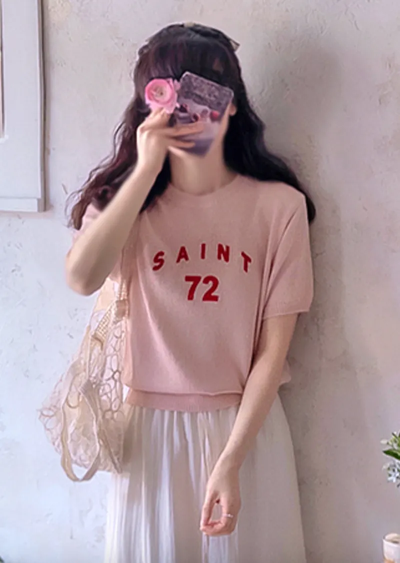 優雅點綴數字字母柔和色彩針織上衣