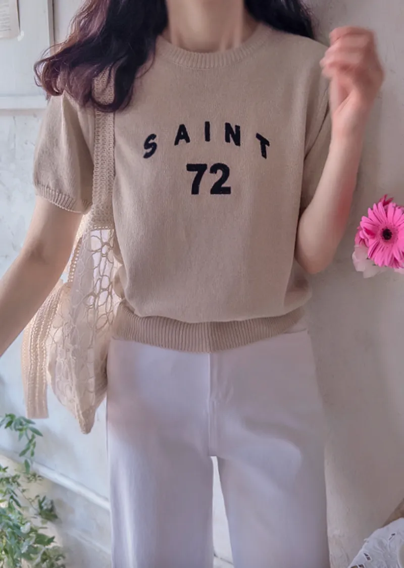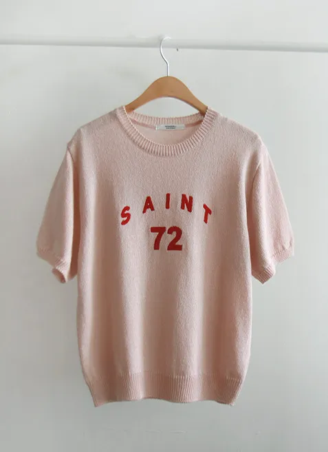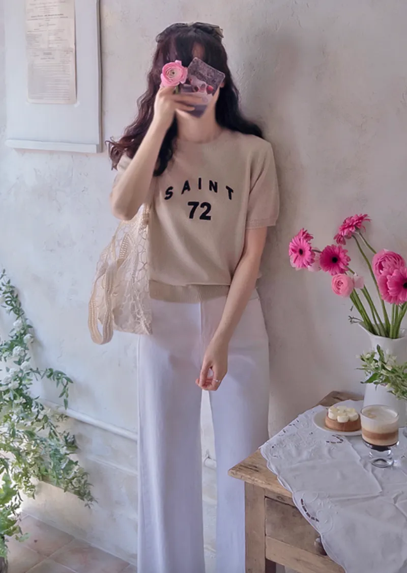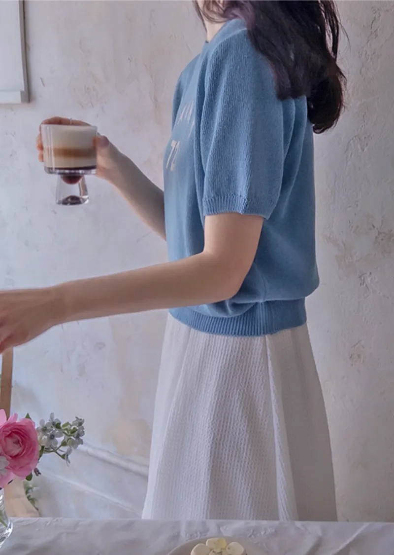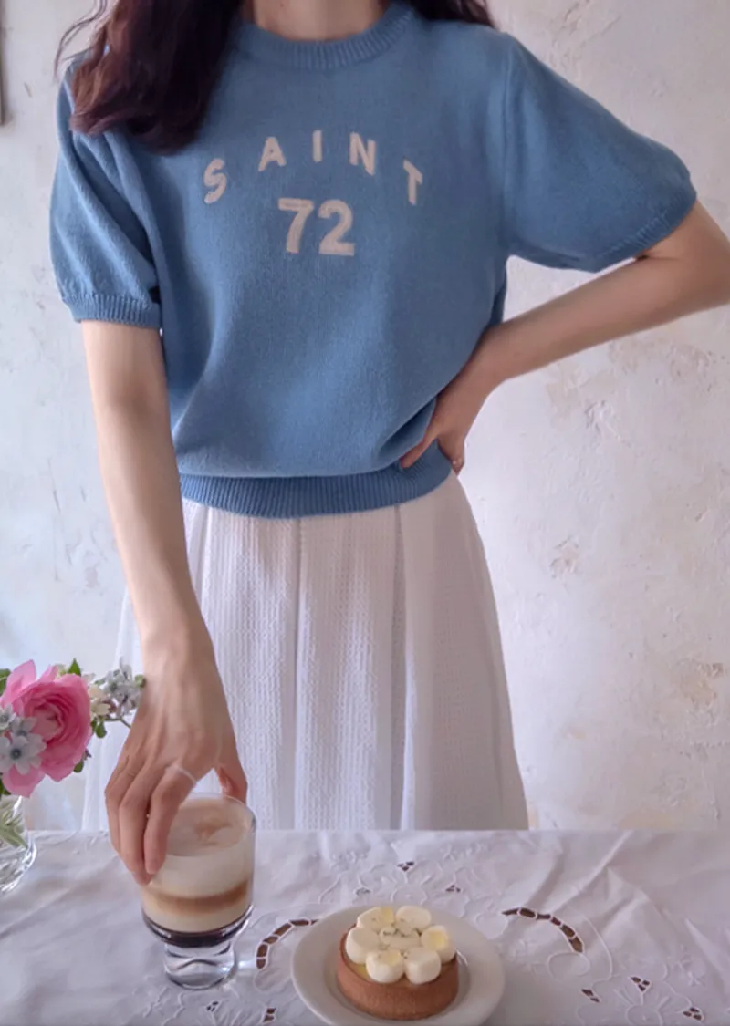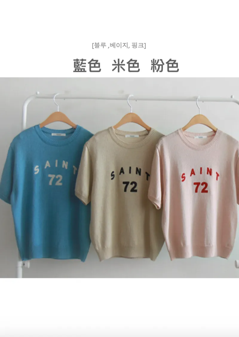 優雅點綴數字字母柔和色彩針織上衣