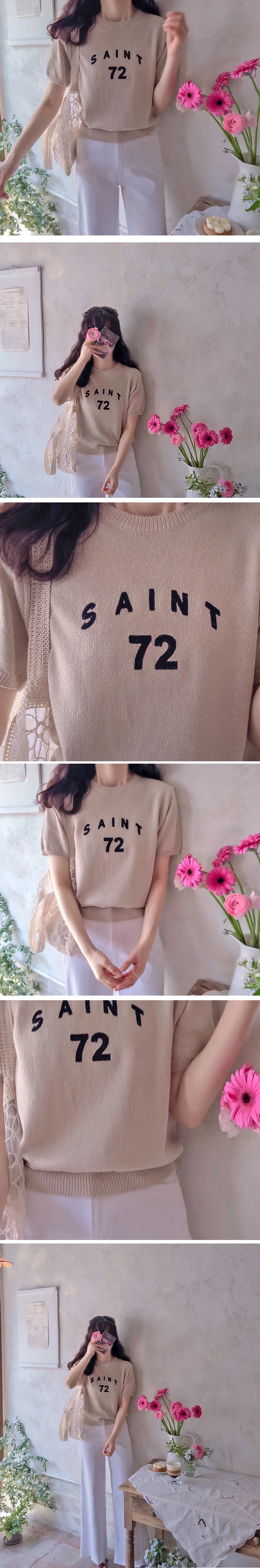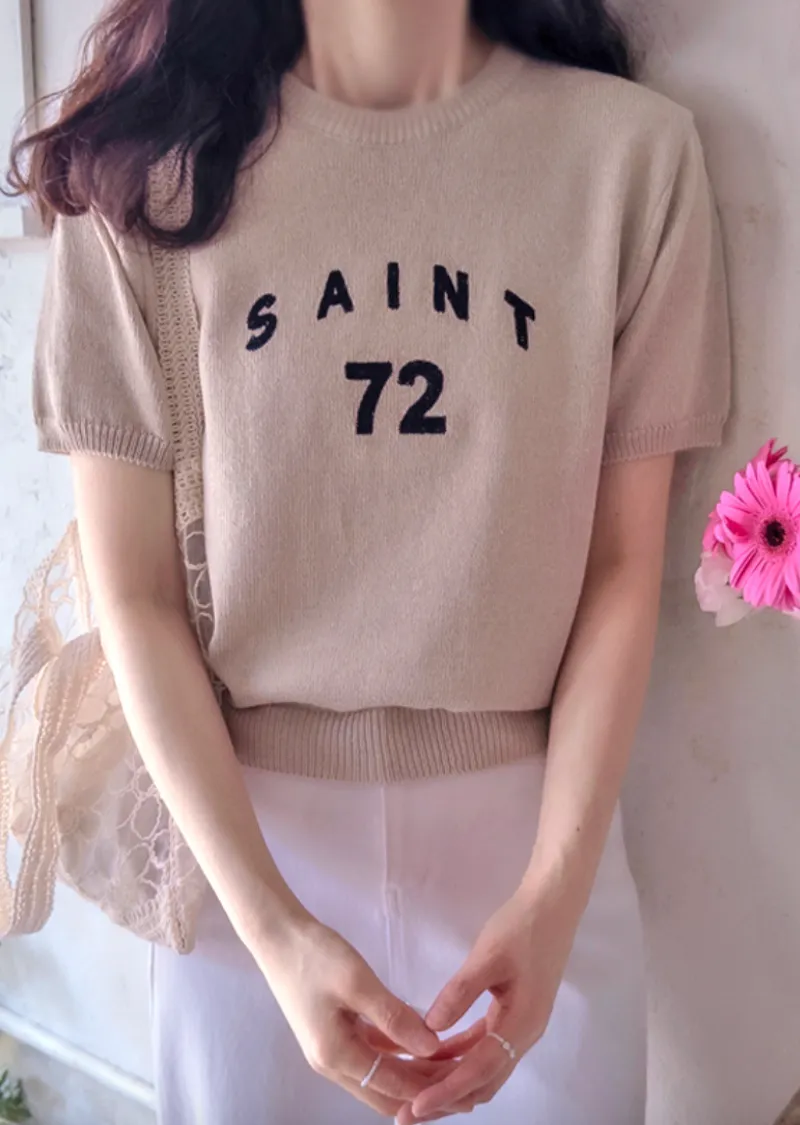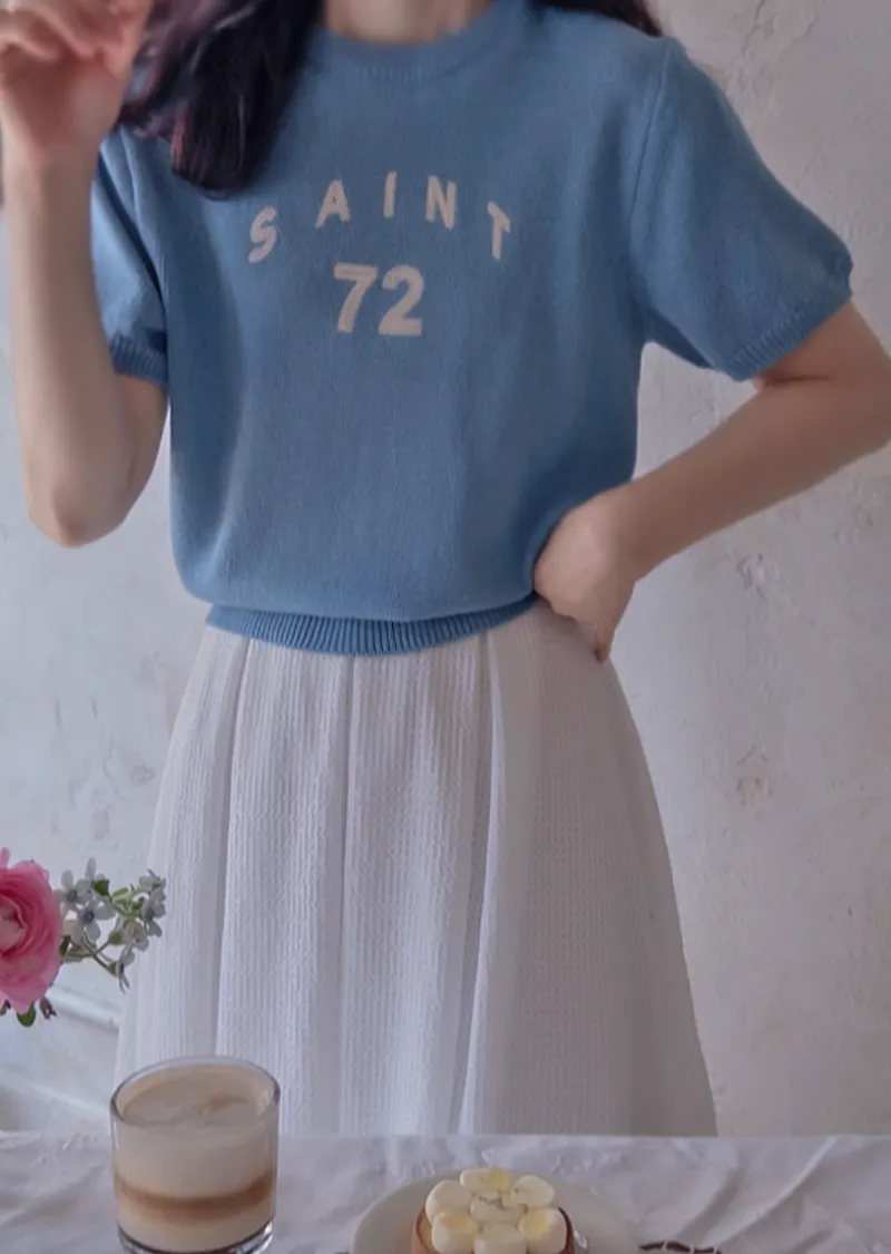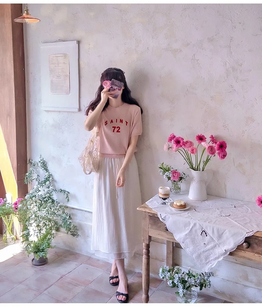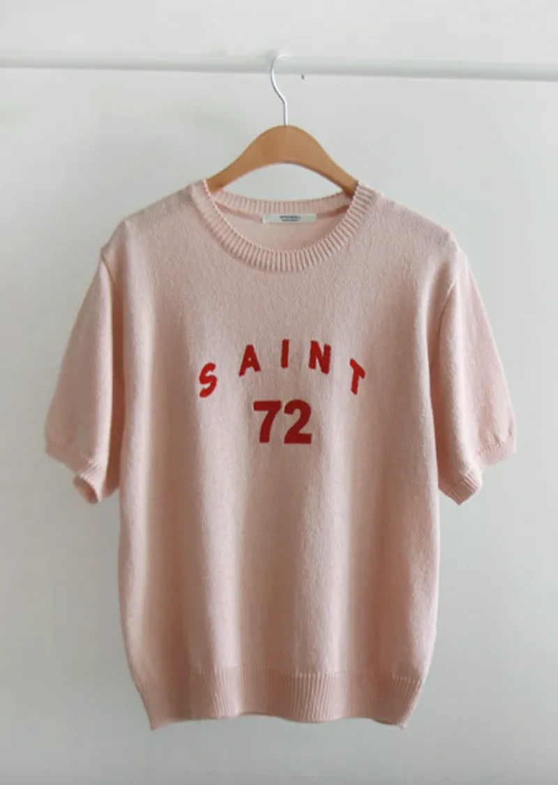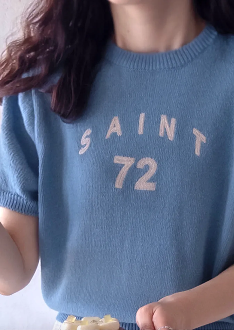 優雅點綴數字字母柔和色彩針織上衣