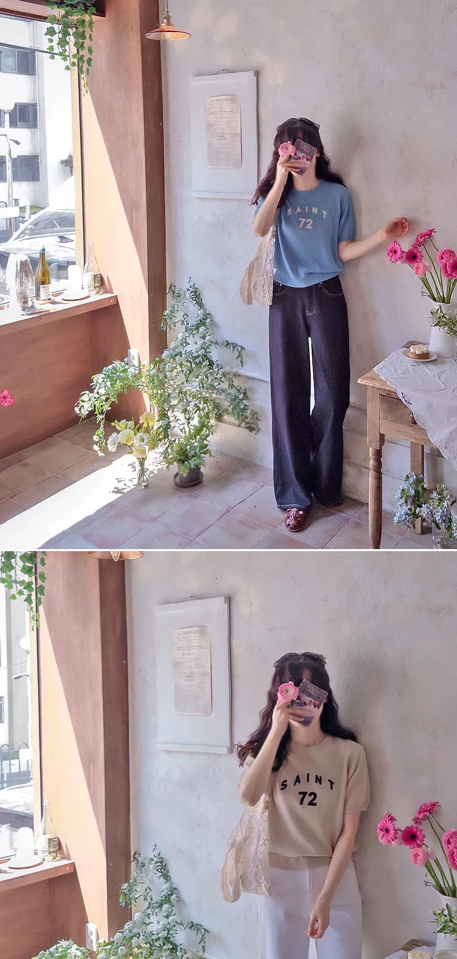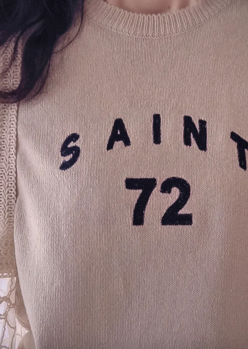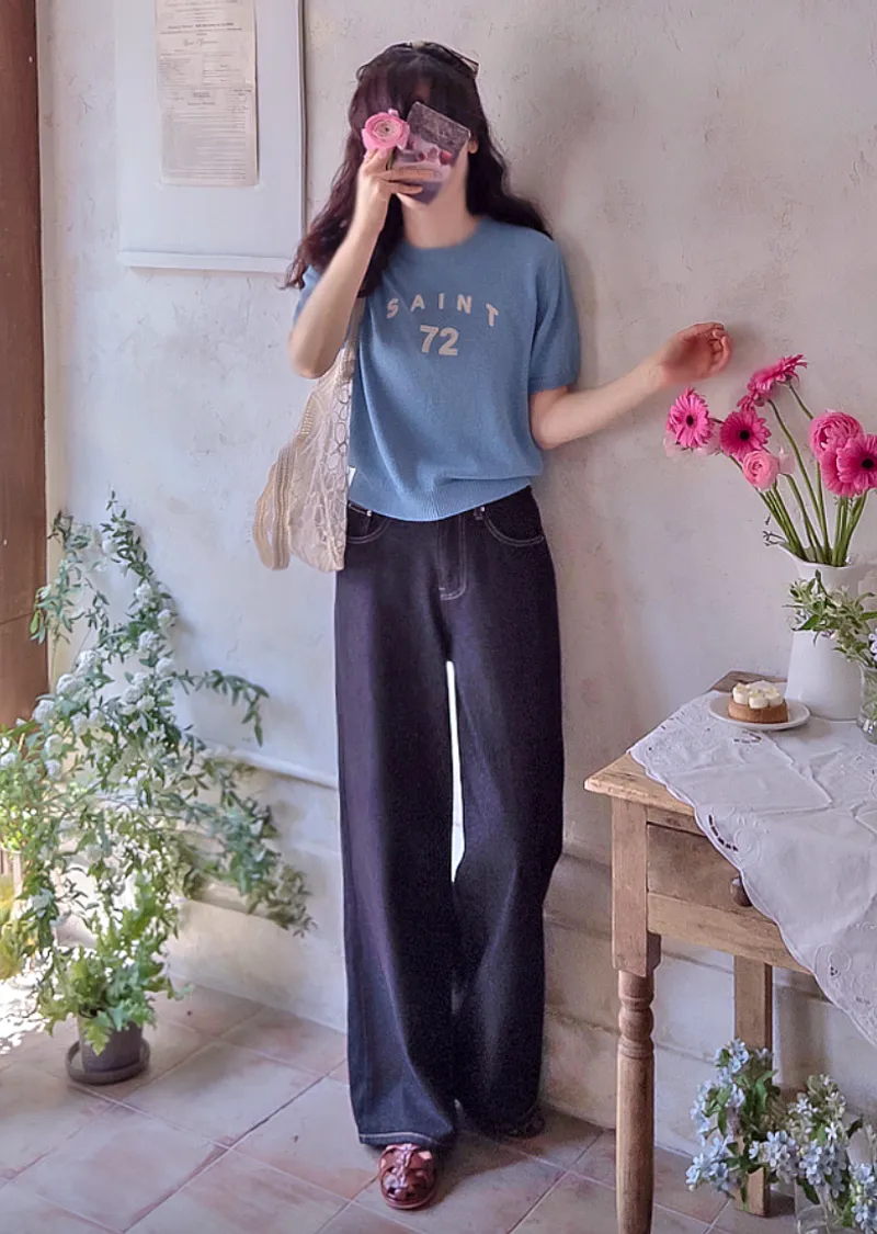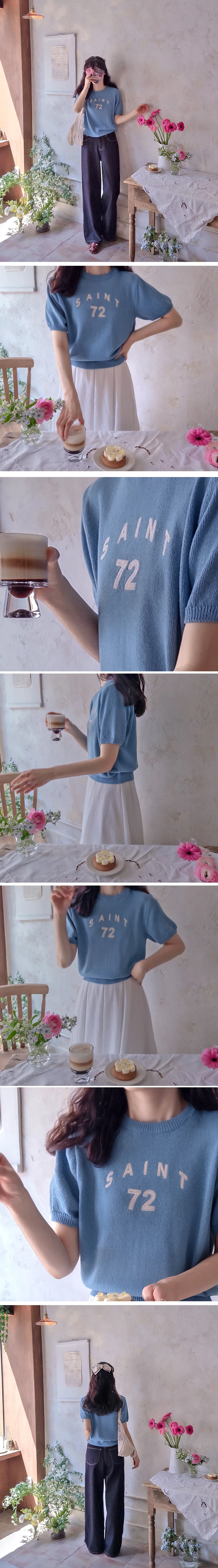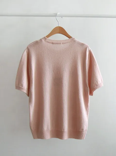 優雅點綴數字字母柔和色彩針織上衣