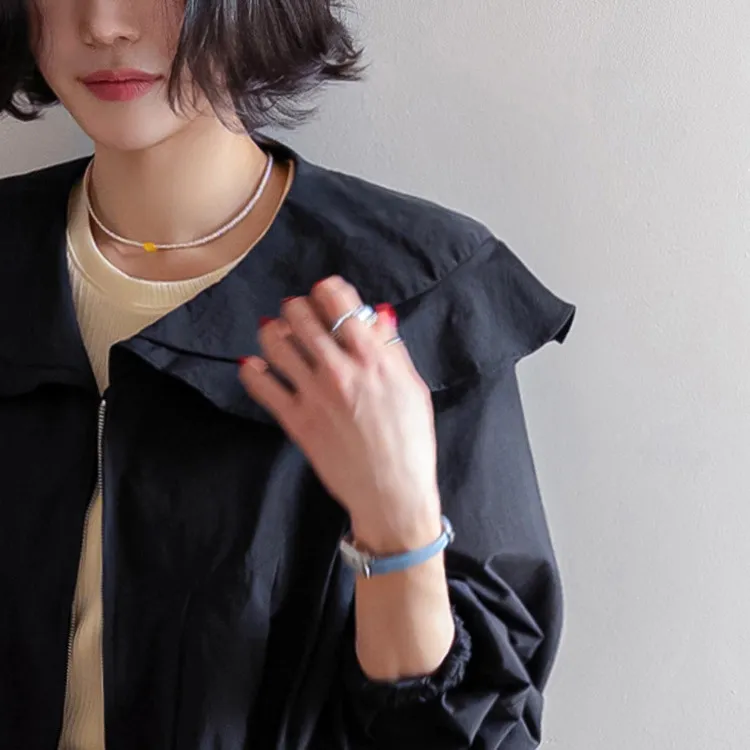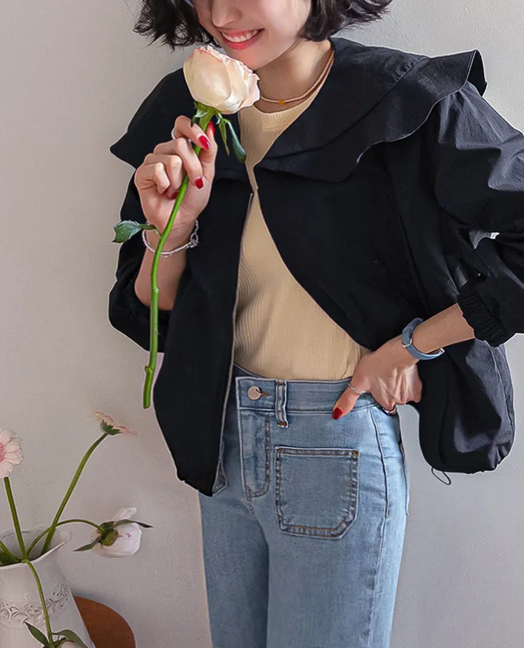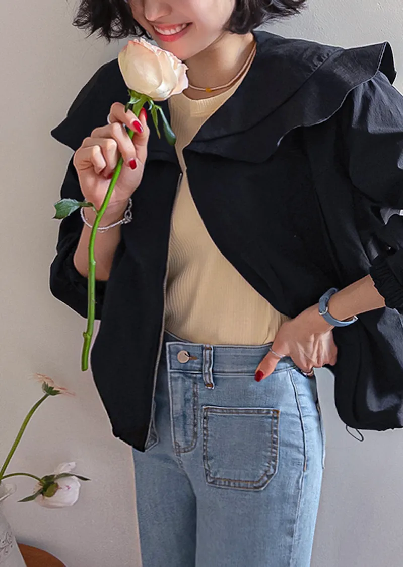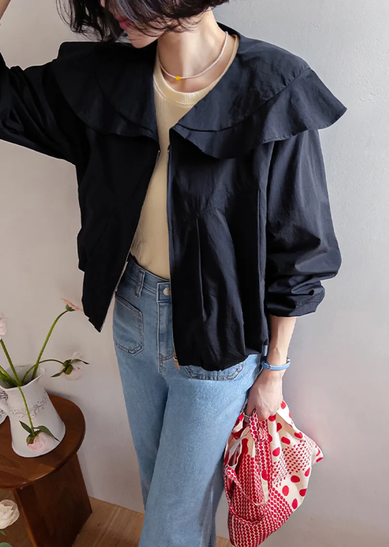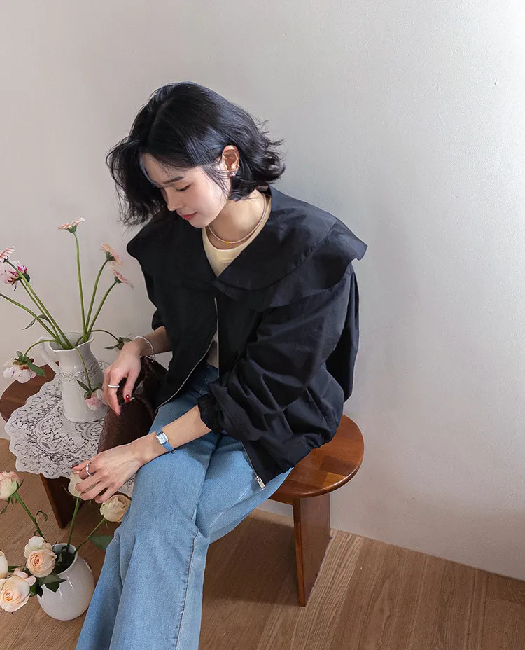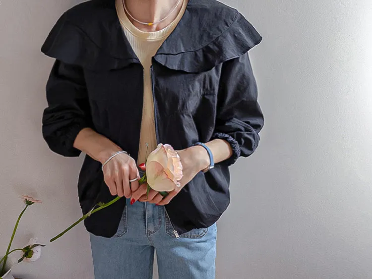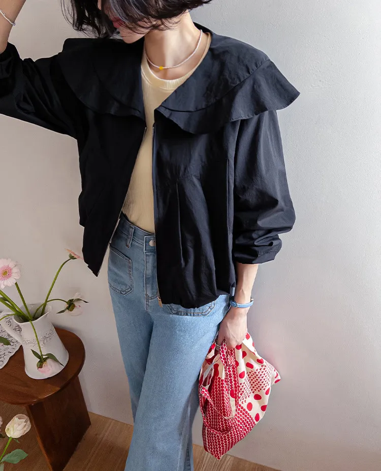 可愛寬摺邊領斜裁線條下擺束邊立體輪廓穿搭外套