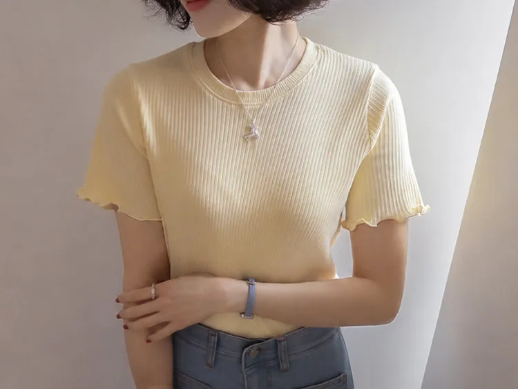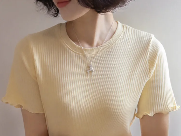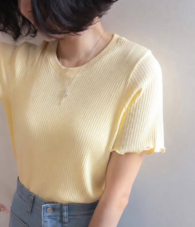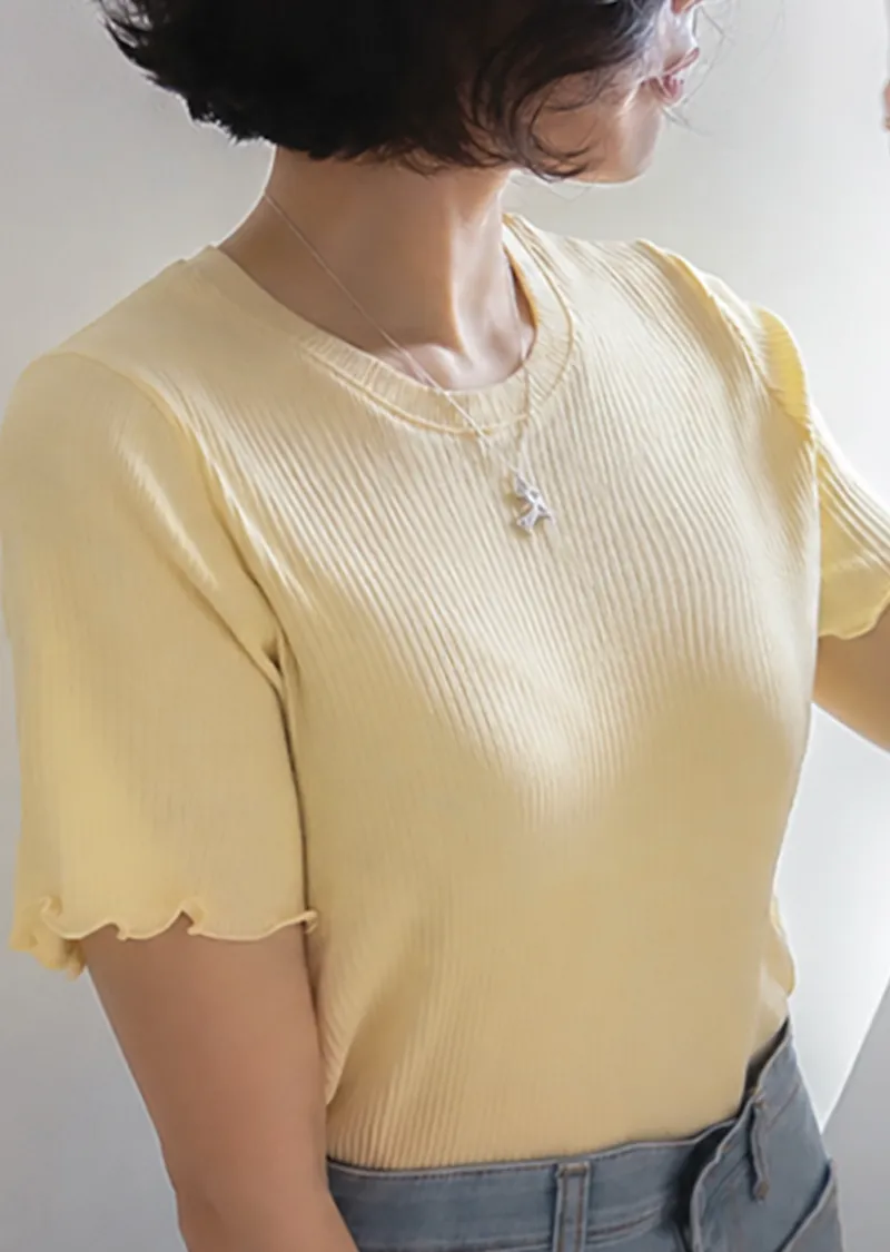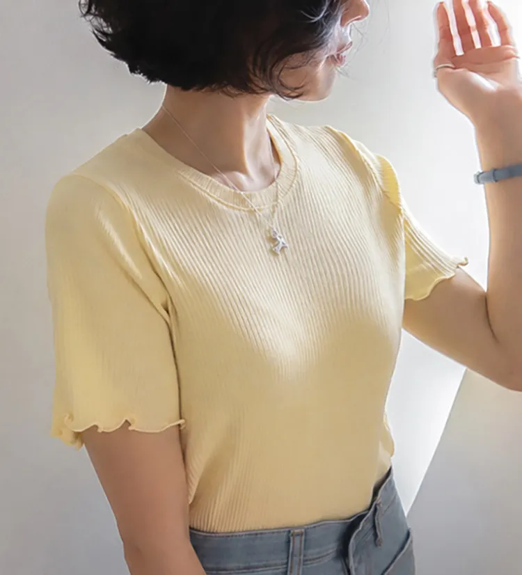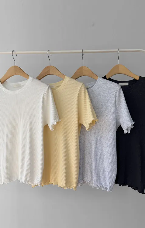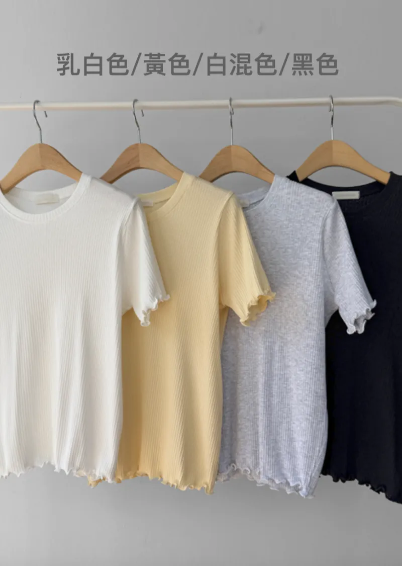 精緻袖末下擺波浪邊線條修身穿搭上衣