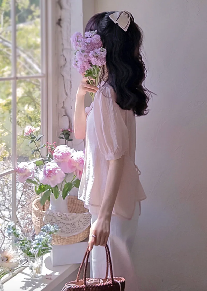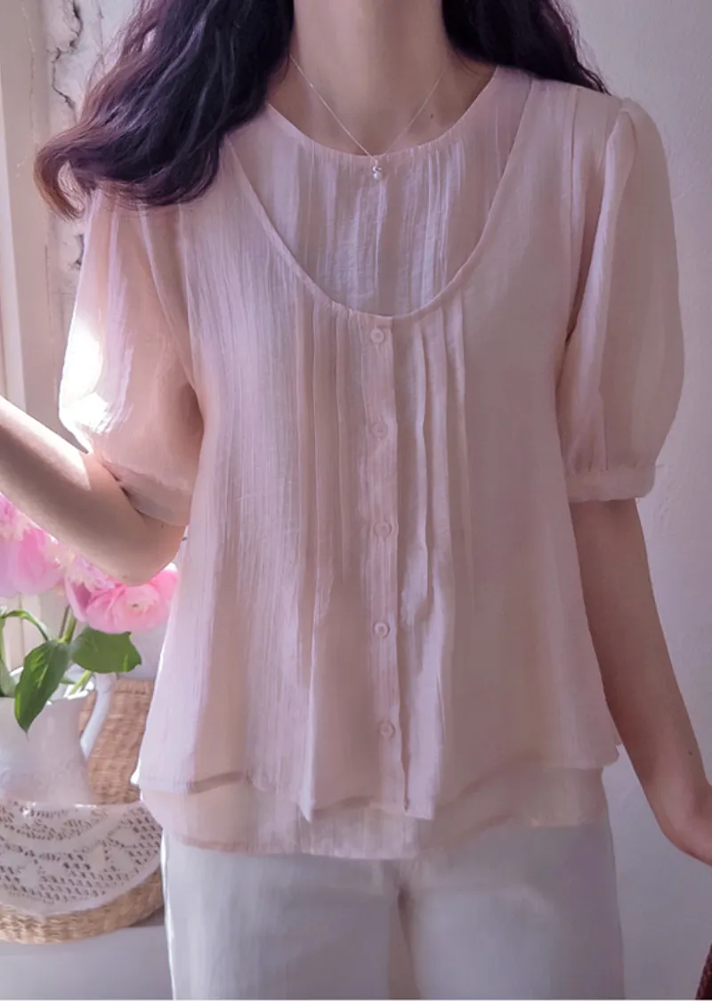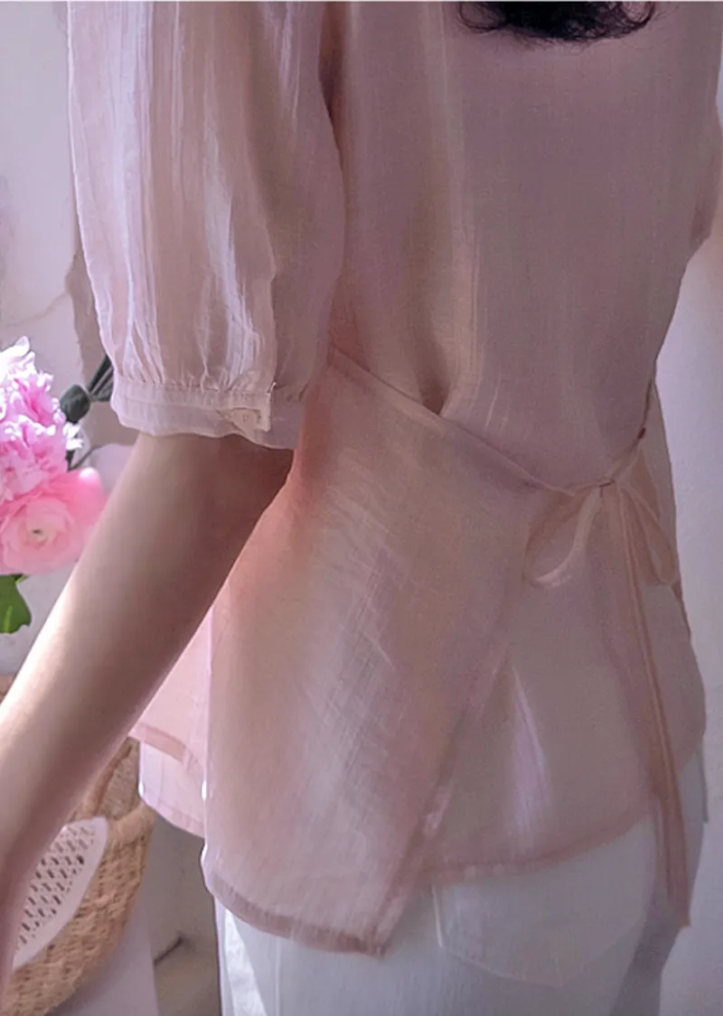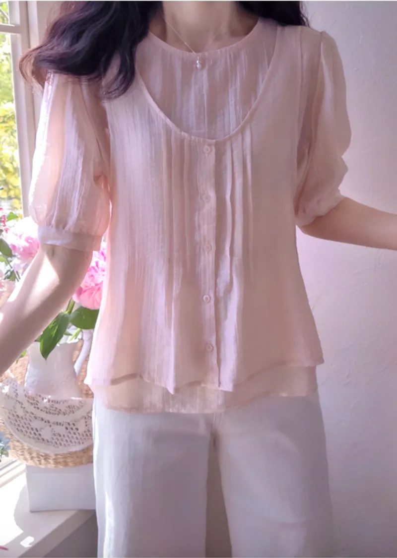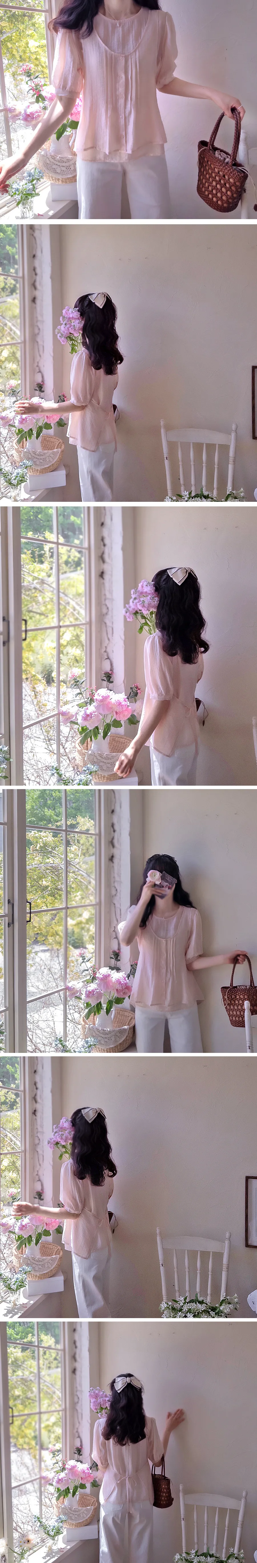 【天絲80 尼龍20】【疊層背心式上衣:前背心與上衣相連,後背繫綁帶】【精緻疊層上衣營造出甜美浪漫的氛圍】【充滿浪漫魅力色彩清新淡雅上衣】