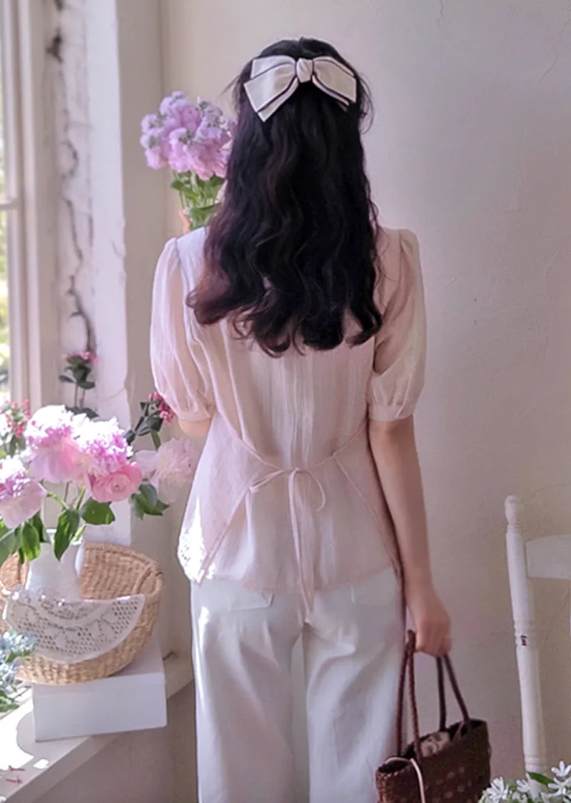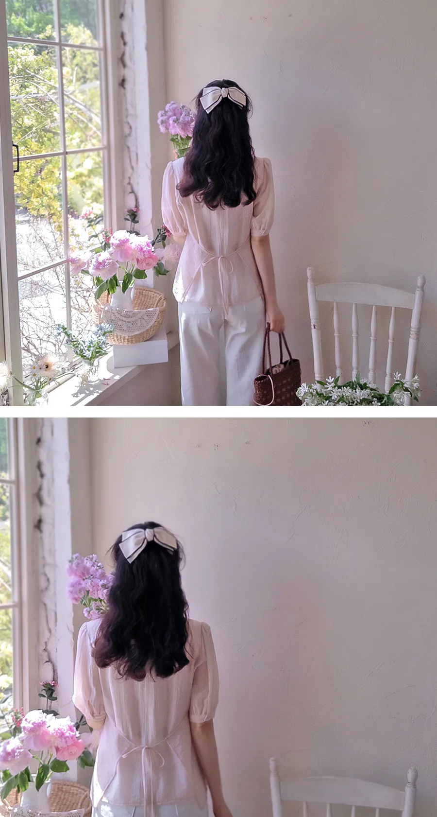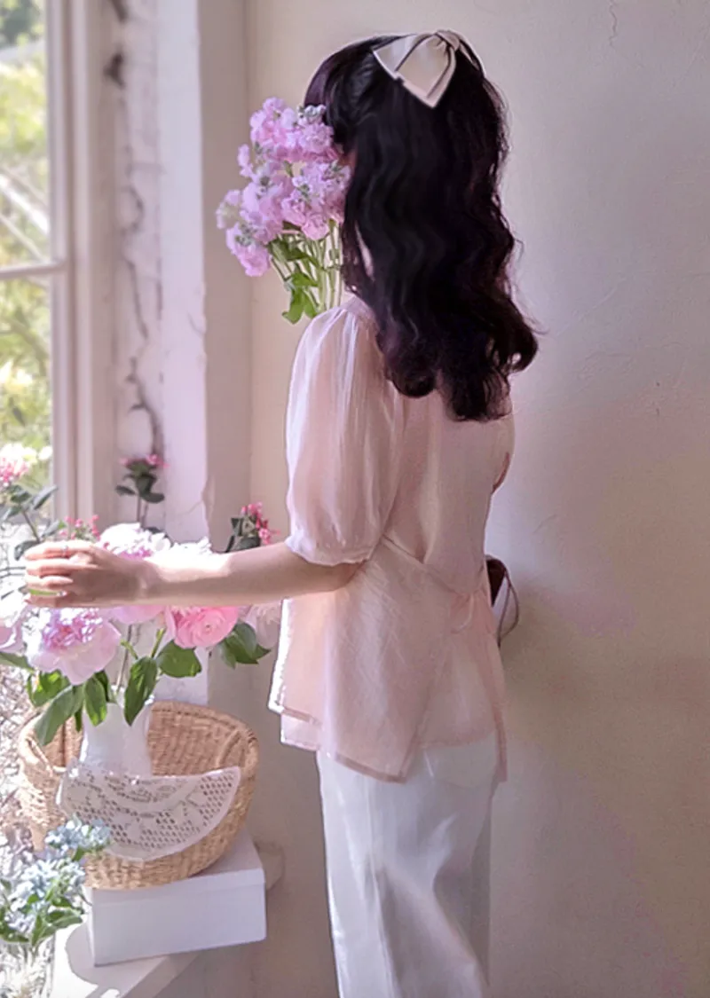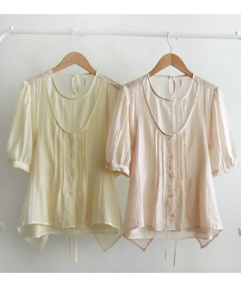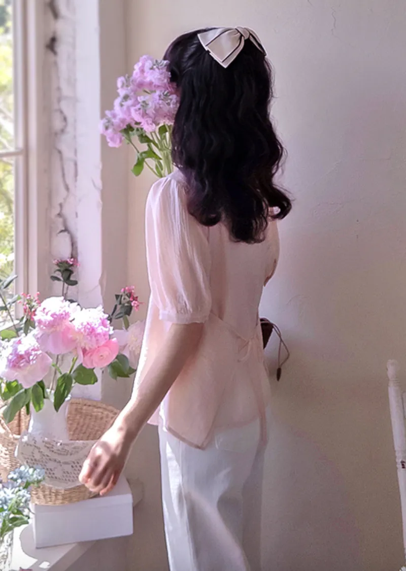 【天絲80 尼龍20】【疊層背心式上衣:前背心與上衣相連,後背繫綁帶】【精緻疊層上衣營造出甜美浪漫的氛圍】【充滿浪漫魅力色彩清新淡雅上衣】